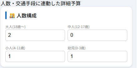 人数・交通手段に連動した詳細予算