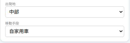 こちらに出発地点と移動手段を入力してください。